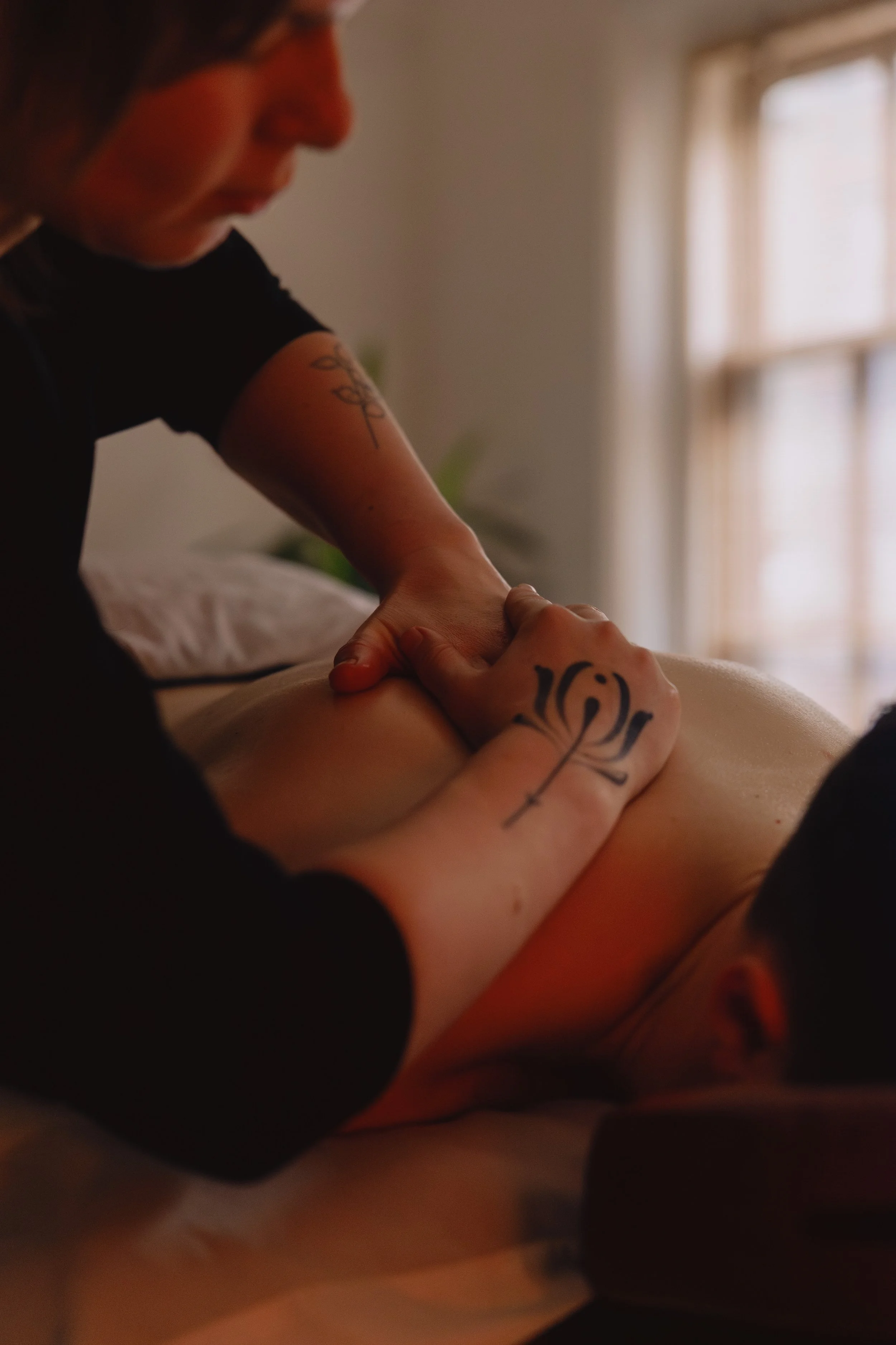 I offer thirty, sixty and ninety minute holistic massages by appointment. These sessions are tailored specifically to your needs and whatever you turn up with on the day. This might look like addressing specific aches and pains, emotional release, working with where you are in your cycle, or just a space to deeply relax and step away from your daily stresses. I work with gentle to medium pressure, and use aromatherapy oils for a full sensory experience. By meeting your body gently, together we can calm the nervous system and give you a nurturing space for recovery and rest.